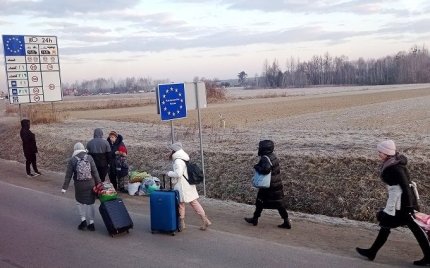 Беженцы из Украины на границе с Польшей (пункт пропуска Грушев — Будомеж),