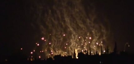 "Сирия. Зажигательные бомбы, сброшенные SyAF на Растан к северу от Хомса сегодня ночью", - написал он.