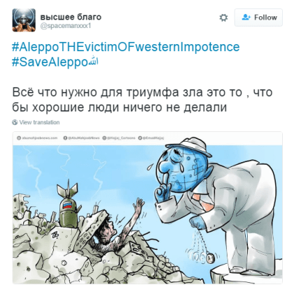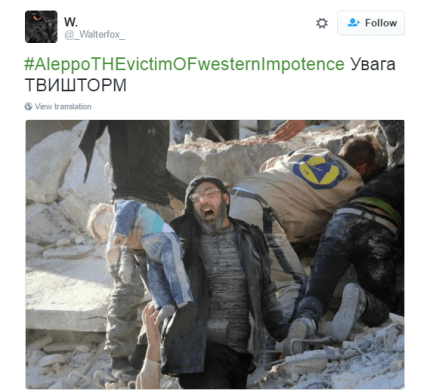 В сети призывают мировое сообщество отреагировать на убийства мирных жителей Алеппо, которые совершили армии президента Сирии Башара Асада и его союзника, российского президента Владимира Путина.