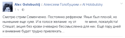 Как написал политтехнолог Алексей Голобуцкий в своем Facebook, что организаторы акции явно хотели, чтобы в центре Киева пролилась кровь.