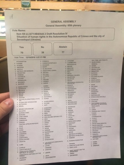 "Кто и как голосовал за украинскую резолюцию по Крыму", - подписан снимок документа.