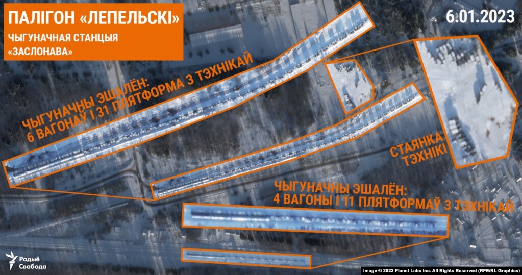 Журналисты отмечают, что полигон «Лепельский» был одним из первых, куда стали прибывать российские эшелоны с техникой и военными.