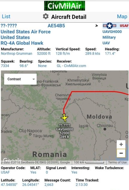 Затем беспилотник развернулся и полетел на запад Украины. В районе Черновцов летательный аппарат повернул на юг и вошел в воздушное пространство Румынии.