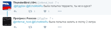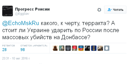 На сайте популярного российского ресурса "Эхо Москвы" его читателям предложили ответить на вопрос: «Стоит ли России, после попытки теракта в Крыму, ударить по Украине», после истерии об "украинских диверсантах" в Крыму, которая заполонила российские сми.