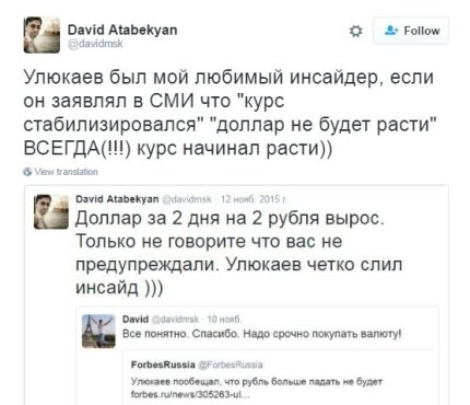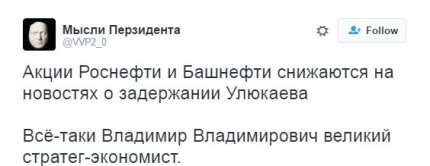 Журналист Антон Швец в Facebook пошутил: "Провидение. Я просил на 15е посадить Новинского, а не Улюкаева".