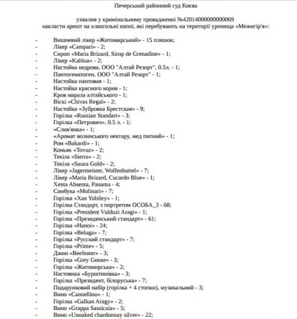 Печерский районный суд Киева наложил арест на алкогольные напитки, которые хранятся в бывшей резиденции экс-президента Украины Виктора Януковича "Межигорье".