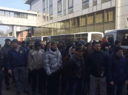Сообщается, что под зданием суда собралось более сотни молодых людей с нашивками "Национальный корпус". Активисты выкрикивают: "Насирова под арест".