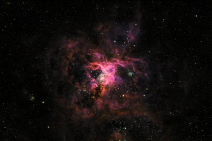 Туманность Тарантул расположена в Большом Магеллановом Облаке, галактике-спутнике Молочного Пути, на расстоянии около 179 000 световых лет от Земли. Это огромное облако газа и пыли, состоящее преимущественно из ионизированного водорода. Кроме туманности SuperBIT также сделал снимки столкновения галактик NGC 4039 и NGC 4038.