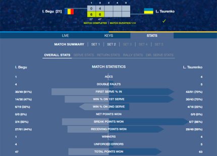 Статистика матча Бегу - Цуренко