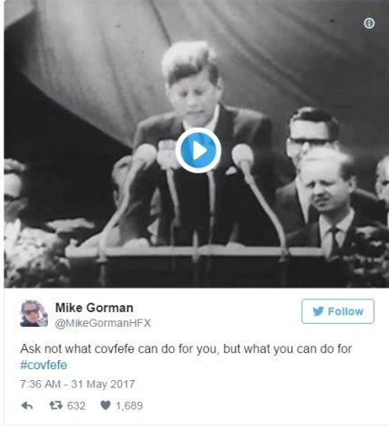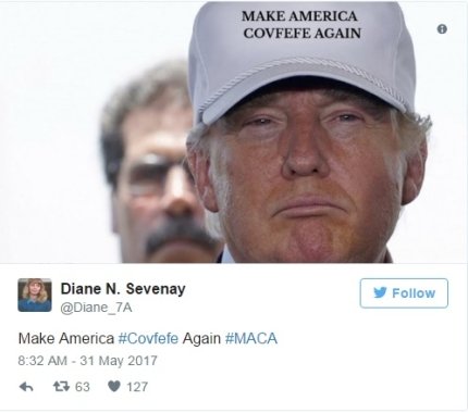 Президент США Дональд Трамп сделал загадочную публикацию в своем Twitter, использовав в предложении странное слово "covfefe", у которого нет никакого значения в английском языке: несмотря, на то, что твит был удален, он успел поднять в соцсетях настоящую волну шуток и фотожаб.