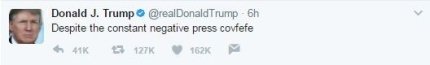 "Несмотря на постоянное негативное медиа covfefe...", - написал Трамп.