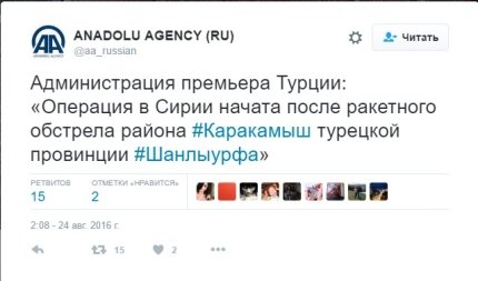 Как заявил глава МВД Турции Эфкан Ала, наземная операция получила название "Щит Евфрата" и стала первой наземной операцией турецких военных с лета 2015 года.