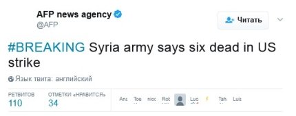По данным сирийских военных, в результате ракетного удара американцев были убиты шестеро военных.