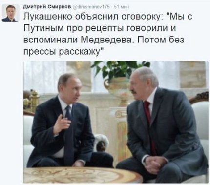 Позже, как сообщил журналист кремлёвского пула Дмитрий Смирнов, Лукашенко объяснил свою оговорку следующим образом:
