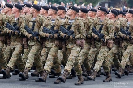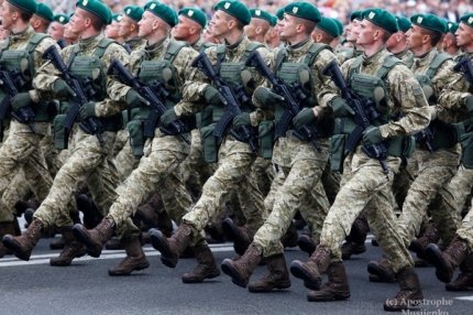 Спикер генпрокурора Украины Юрия Луценко Лариса Сарган обратила внимание на то, что военные парады в Украине и в России отличаются даже тем, как солдаты носят оружие.