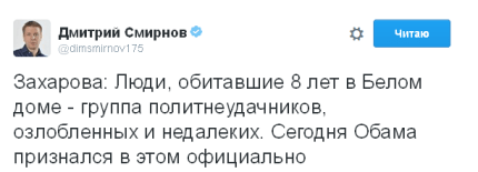 В частности, Захарова назвала администрацию президента США "группой неудачников, озлобленных и недалеких".