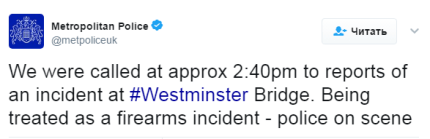 В лондонской полиции подтвердили факт инцидента и уточнили, что он произошел на Вестминстерском мосту через Темзу.