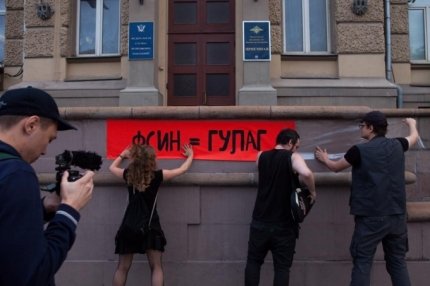 Она также рассказала, что когда они повесили баннер с надписью "ФСИН = ГУЛАГ", к ним вышел человек в форме и сказал, что ведомство не было заранее проинформировано об акции в письменной форме. Она добавила, что правоохарнитель начал неразборчиво говорить о ненадлежащей форме подачи, срывая наклейки с надписями "убийства", "пытки" и "рабский труд".