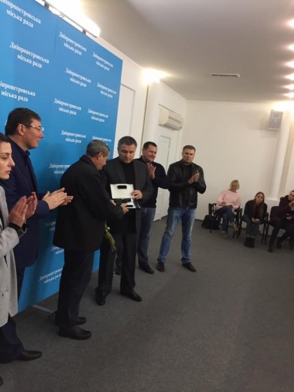 Министр внутренних дел Арсен Аваков вручил водителю маршрутного такси, который пытался задержать убийцу патрульных полицейских в Днепре, наградное оружие.