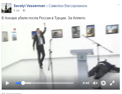 В соцсетях появились фото и видеозаписи происшедшего, на которых также запечатлен подозреваемый в совершении нападения. После того, как Карлов упал в процессе своего выступления, мужчина стал размахивать пистолетом и кричать: "За Алеппо!".