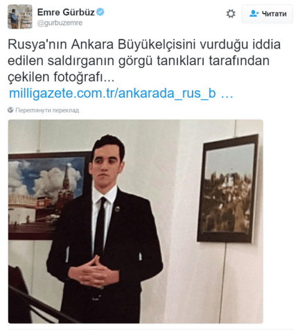 Убийство произошло во время выступления Карлова, которое транслировали в прямом эфире турецкого телевидения. Возраст нападавшего примерно 20-25 лет, и, согласно неподтвержденной информации, его ликвидировали.