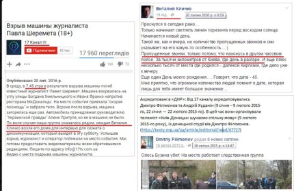 «У 17-го канала явные нестыковки с видео по Шеремету, и их корреспонденты был одними из первых в 2015-м по Бузине (на месте убийства журналиста Олеся Бузины – Ред.)», - пишет пользователь Twitter «Львівський батяр».