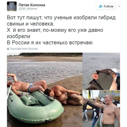 Пользователи сети пошутили, что ученые не совершили открытие, так, как в России давно можно наблюдать гибрид свиньи и человека.