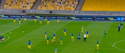 15:57. на трибунах развернут самый большой флаг Украины в мире, который будет вдохновлять наших футболистов на победу. Флаг размерами 60х40 метров занесен в Книгу рекордов Украины.