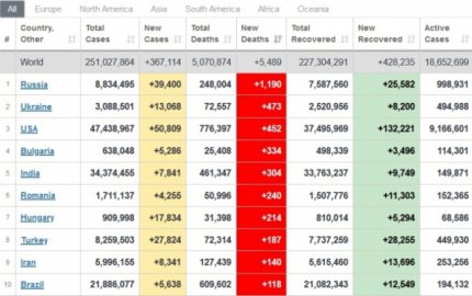 За прошедшие сутки в мире выявили более 367 тысяч новых случаев заболевания коронавирусом. Следует отметить, что в мире по суточной смертности от коронавируса лидируют Россия, Украина и США.