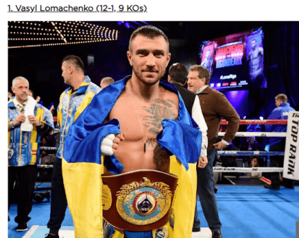 Украинец Василий Ломаченко, который является чемпионом мира по боксу в легком весе по версиям WBA и WBO, стал лидером рейтинга Р4Р (независимо от весовой категории) по версии издания talkSPORT, сообщает ONLINE.UA.
