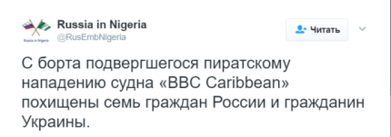 Как сообщает ONLINE.UA, такую информацию обнародовало посольство России в Нигерии в своем Twitter.