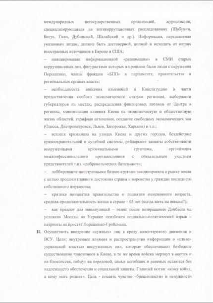 «Достижение изложенных целей предусматривает обеспечение в кратчайшие сроки мер по дестабилизации политической жизни в Украине, следствием чего должны стать досрочные парламентские и президентские выборы. Наиболее благоприятный период для реализации разработанного комплекса мероприятий ноябрь 2016 – март 2017», - говорится в извлеченном хакерами документе.