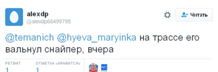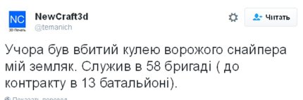 О гибели «Якудзы» в Twitter-аккаунте temanich сообщил также и его земляк, который написал: «Вчера был убит пулей вражеского снайпера мой земляк. Служил в 58-й бригаде (до контракта в 13-м батальоне)».