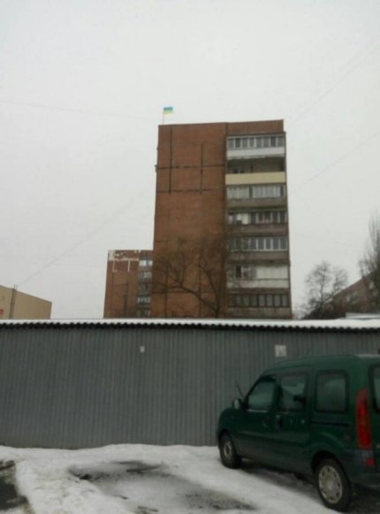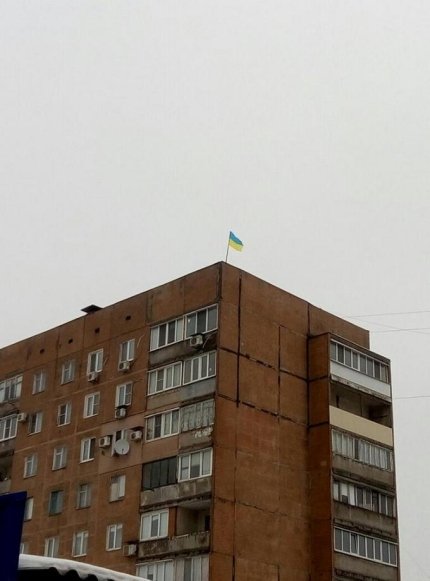 Утром 4 февраля на одном из жилых домов в Донецке появился флаг Украины, что обрадовало пользователей сети.