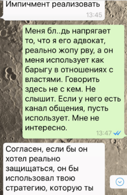 Остафийчук отметил, что орган досудебного следствия, осознавая необходимость сохранения адвокатской тайны СБУ, обнародует фрагменты переписки адвоката Онищенко Андрея Цыганкова с гражданином Д., являющегося фигурантом уголовного производства, которое расследует НАБУ.