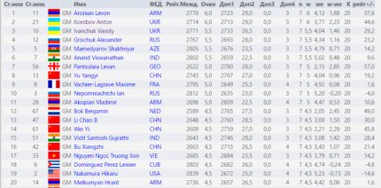 Напомним, после первого дня Антон Коробов лидировал, а Василий Иванчук занимал 12-е место. Но победы в 6-м и 7-м турах подняли знаменитого украинского гроссмейстера в первую тройку.