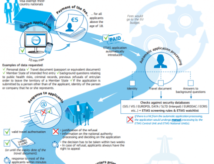 Отмечается, что ETIAS будет собирать информацию о всех тех, кто путешествует без виз в ЕС, что позволит заранее избегать нелегальной миграции и проверок безопасности.
