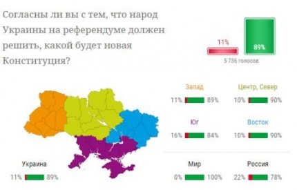 Большинство граждан Украины (89%) поддерживают идею премьер-министра и готовы сами решать, какой будет новая Конституция. Только 11% респондентов считают, что изменения в Основной Закон государства должны рассматривать парламентарии.