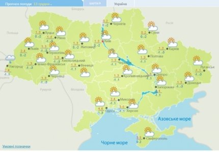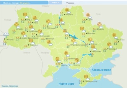 9 декабря на всей территории Украины днем температура воздуха будет достигать +5...+7°С. Ночью столбики термометров будут опускаться ближе к нулю.