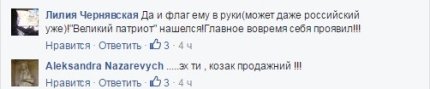 "Странно, чего это он вдруг? Все время такого патриота изображал, имидж казака, украинская символика... пуйло его, что ли, покусало?", - прокомментировала картинку Lorri Korotenko.
