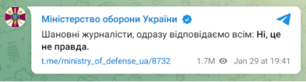 На фоне этих сообщений, Минобороны Украины опубликовало сообщение, в котором указывается, что сообщения СМИ — неправда.