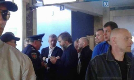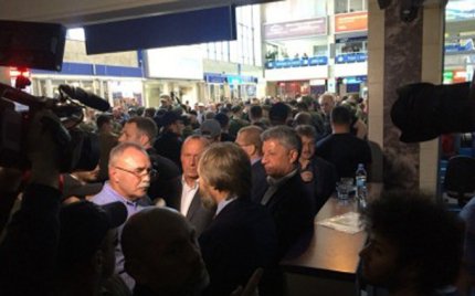 В Одесском аэропорту, где активисты заблокировали лидеров Оппозиционного блока Вадима Новинского и Юрия Бойко, появились титушки, которые попытались разблокировать политиков.