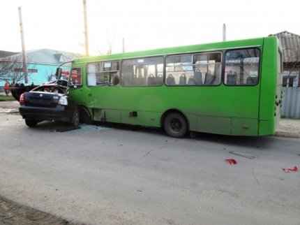 В Балаклее Харьковской области легковой автомобиль врезался в пассажирский автобус, в результате чего погибли два человека и еще 13 пострадали.