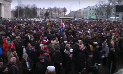 Сообщается, что несколько тысяч человек вышли в Гомеле на марш протеста против экономической политики президента страны Александра Лукашенко. Активисты несли национальные бело-красно-белые флаги и скандировали «Жыве Беларусь!».