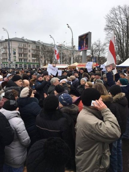 Отмечается, что люди собрались на площади Восстания, большая колонна прошла по улице Советской до площади Ленина. Звучали политические лозунги, лозунги против налогов на «тунеядство». Популярной кричалкой стало: «Нет декрету номер три! Лукашенко, уходи!».