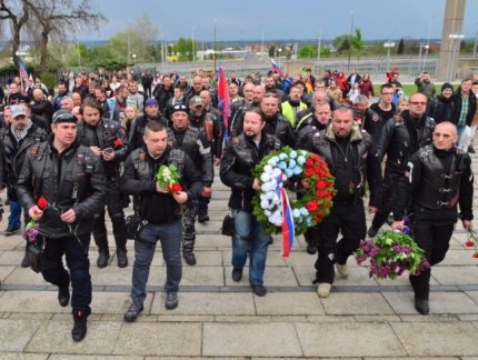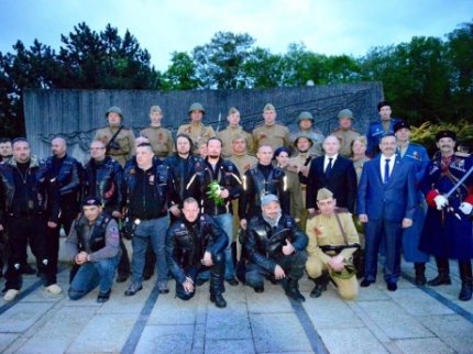 Председатель Южноморавского края Чехии Михал Гашек сфотографировался с байкерами российского клуба «Ночные волки», которые совершают мотопробег "Дороги Победы — на Берлин", на фоне флага так называемой ДНР.