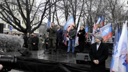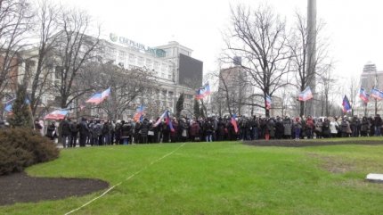 В пятницу, 18 марта, в оккупированном Донецке прошел митинг, который члены так называемой ДНР посвятили второй годовщине аннексии Крыма. В сквере возле площади Ленина члены незаконного движения «Донецкая республика» установили стелу «Россия».