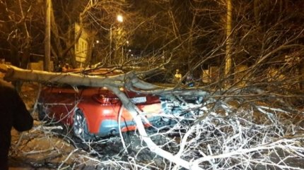 Последний после столкновения отбросило на дерево, которое сломалось и упало на автомобиль. В это время в придавленную Infinity сзади врезался еще и BMW Х4, после чего продолжил движение и остановился, въехав в мусорные контейнеры.