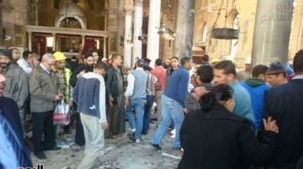 Неизвестный, по предварительным данным, бросил взрывное устройство в одно из помещений коптского храма, когда там шла служба. По другим данным, устройство могло находиться в сумке и его привели в действие дистанционно.