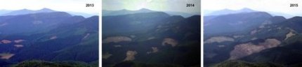 Дорога к горе устелена изувеченной природой и лысыми пеньками. Фотографиями этих мест путешественники делятся на форумах в сети: